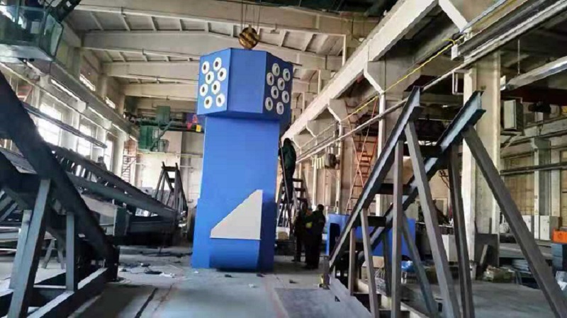 整體凈化空調(diào)機(jī)組原理通過風(fēng)機(jī)引力作用,車間廢氣經(jīng)電動(dòng)風(fēng)口吸入設(shè)備進(jìn)風(fēng)口,設(shè)備進(jìn)風(fēng)口處設(shè)有阻火網(wǎng),火花經(jīng)阻火網(wǎng)被阻留,煙塵氣體進(jìn)入沉降室,利用重力與上行氣流,首先將粗粒塵直接降至灰斗,微粒煙塵被濾芯捕集在外表面,潔凈氣體經(jīng)濾芯過濾凈化后,由濾芯中心流入潔凈室,附著在濾芯表面的微粒煙塵經(jīng)反吹系統(tǒng)的反吹做用使微粒煙塵落入灰斗。潔凈氣體經(jīng)風(fēng)機(jī)室,到達(dá)空調(diào)室,使?jié)崈魵怏w升至(或降至)系統(tǒng)預(yù)設(shè)溫度,在經(jīng)設(shè)備頂部球形噴口的射流作用,把已達(dá)到預(yù)定溫度的潔凈氣體送入車間12m范圍內(nèi)。