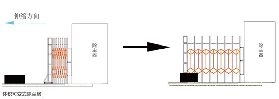 體積可調(diào)通風(fēng)除塵房是一種可以根據(jù)實(shí)際在使用時(shí)的工件大小,自動(dòng)調(diào)節(jié)房間大小,調(diào)節(jié)房間通風(fēng)量形成封閉或半封閉的環(huán)保除塵通風(fēng)房,不使用時(shí)收縮合攏到一處的特殊環(huán)保通風(fēng)除塵房設(shè)備他是先進(jìn)新一代環(huán)保設(shè)計(jì)理念及技術(shù)的集成,適合現(xiàn)代人的空間觀念,使其應(yīng)用范圍非常廣泛。